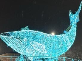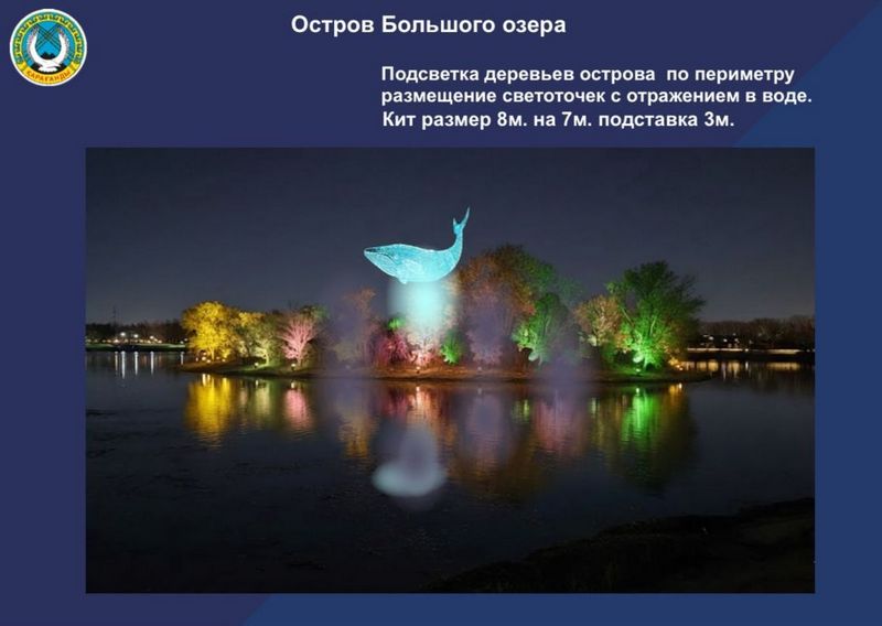 Саябақтағы ерекше арт-нысан — бұған дейін Каскад алаңында жаңа жылдық безендіру ретінде қойылған кит мүсіні — негізгі көлдегі аралшаға көшіріліп, тікелей су айдынына орналастырылады.