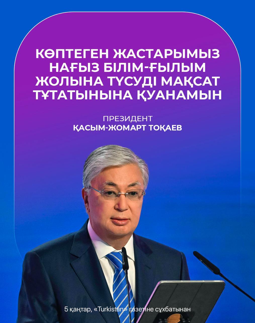 Мемлекет басшысы Қасым-Жомарт Тоқаевтың жастардың білім мен ғылым жолын саналы түрде таңдауы туралы пікірі – ел болашағына деген сенімнің айқын көрінісі.