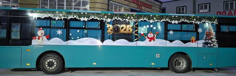 Жаңа жыл қарсаңында қала көшелеріне мерекелік символикамен безендірілген автобустар да шықты. №3 автопарк жеті автобусты жаңа жылдық стильде рәсімдеді: олардың борттарында аққалалар, шыршалар мен сыйлықтар бейнеленіп, «2026» деген жазу орналастырылған. Безендірілген автобустар № 5, 19, 40, 43, 118э және 146 бағыттары бойынша қатынауда.