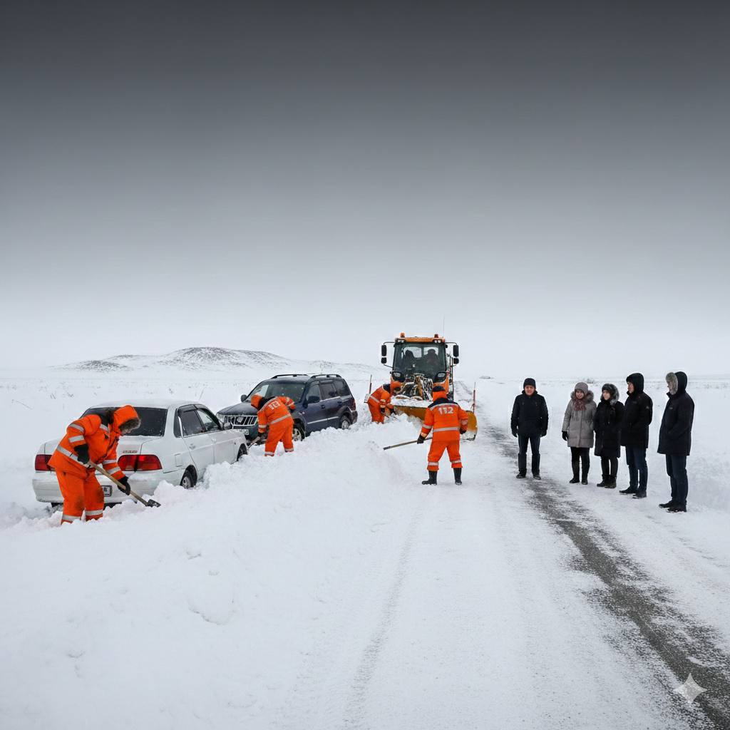 Оқиға орнына жедел жеткен құтқарушылар көліктерді қардан шығарып, жолдың тазартылған бөлігіне жеткізді. Салонда болған жеті адам дін аман.