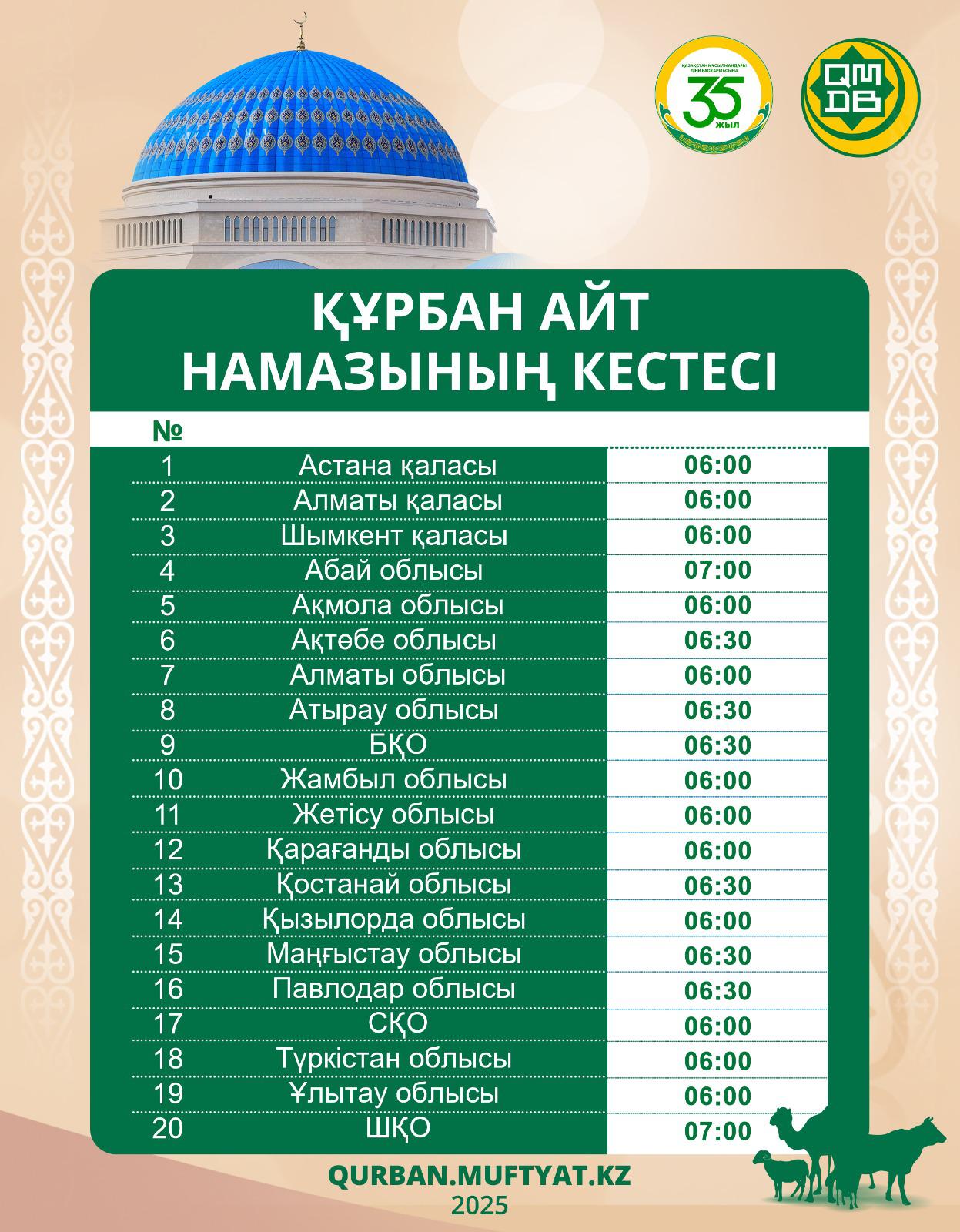 Жаңалықтар 04 06 2025 Еліміз бойынша Құрбан айт намазының кестесі жарияланды Сурет: ҚМДБ 6 маусым – Құрбан айт мейрамының алғашқы күні. Осы күні оқылатын Құрбан айт намазының еліміз бойынша әзірленген кестесін назарларыңызға ұсынамыз. Popular 2026 жылға арналған жұлдыз жорамал Жаңалықтар 15.12.2025 Қостанай облысында бірқатар мектеп қашықтан оқытуға көшті Жаңалықтар 15.12.2025 Қостанай облысындағы бірқатар мектепте 15 желтоқсанда бірінші ауысымда оқитын оқушылар ауа райының қолайсыздығына ба Астана қаласында «AMANAT» партиясы жанындағы «Жастар Рухы» жастар қанатының «Рухтастар» республикалық жастар сыйлығын табыстау рәсімі өтті. Жаңалықтар 15.12.2025 2026 жылға арналған қаржылық жұлдыз жорамал Жаңалықтар Қоғам 15.12.2025 “Қайраттың“ қақпашысы жаңа клубпен келісімшартқа отырды Жаңалықтар 15.12.2025 Алматылық "Қайраттың" қақпашысы Александр Заруцкий "Ақтөбемен" келісімшартқа қол қойды, деп хабарлайды Life09 ақпарат Тақырып бойынша Қарағанды облысының жедел жәрдем қызметі 115 жаңа автокөлікпен толықты 15 12 2025 Астана қаласында «AMANAT» партиясы жанындағы «Жастар Рухы» жастар қанатының «Рухтастар» республикалық жастар сыйлығын табыстау рәсімі өтті. 15 12 2025 Қарағандыда «Жас офицерлер балы – 2025» өтті! 15 12 2025 Жастарға инвестиция: Қарағанды облысында «Тәуелсіздік ұрпақтары» гранттық байқауының жеңімпаздары анықталды 15 12 2025 Қазақстандықтар үшін 2025 жыл қандай болды және неcімен ерекшеленді 15 12 2025 Қарағандылық «Шахтёр» клубын Қазақстанның тәжірибелі бапкері Дмитрий Огай басқарады 15 12 2025