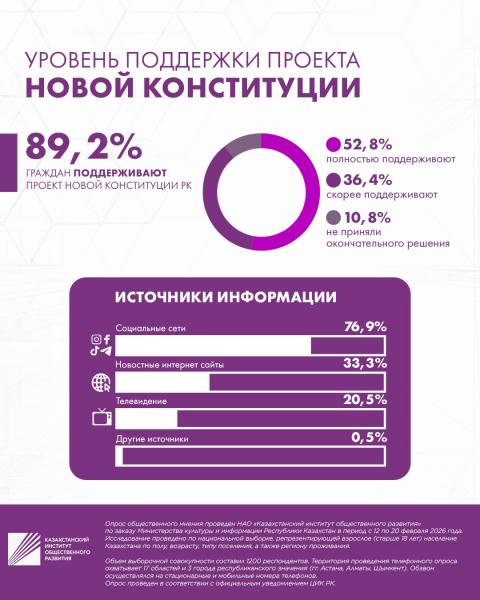 🔎Опрос общественного мнения проведен НАО «Казахстанский институт общественного развития» по заказу Министерства культуры и информации Республики Казахстан в период с 12 по 20 февраля 2026 года.