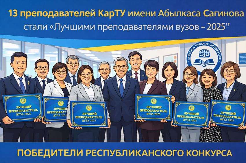 В конкурсе «Лучший преподаватель вуза – 2025» приняли участие 502 претендента из 89 вузов страны. Для Карагандинского технического университета имени Абылкаса Сагинова была определена квота в 13 мест. По результатам внутреннего конкурсного отбора из 28 кандидатов были отобраны 13 преподавателей, и все они успешно прошли республиканский этап, войдя в число победителей конкурса.
