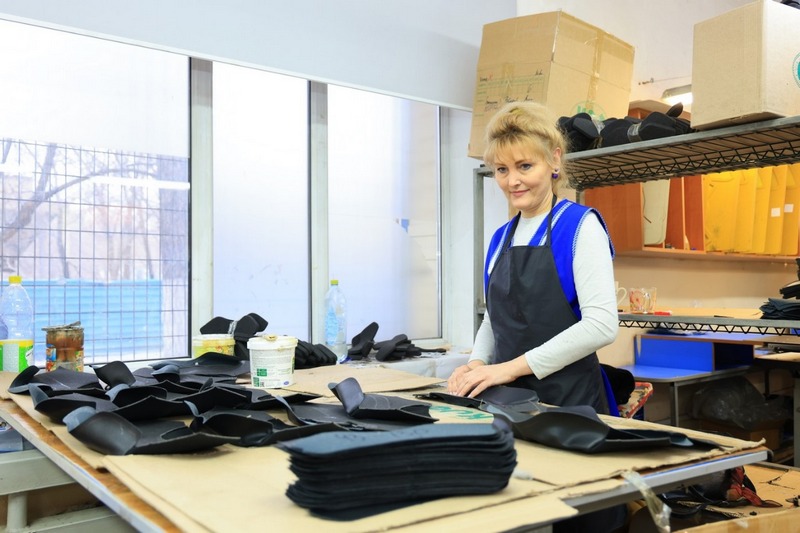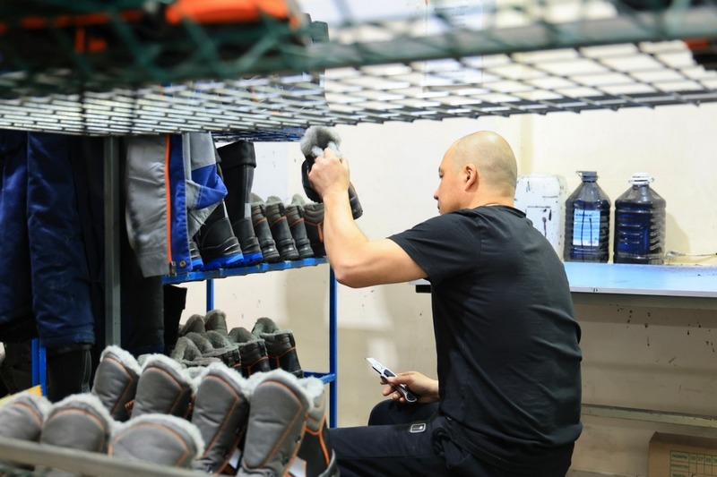 – Подошва двухслойная с наплывом. Для каждого заказчика мы соблюдаем определённые критерии. К примеру, для сварщиков, электриков обувь идёт абсолютно без металла, используем специальные кожаные петли для шнурков. Для сварщиков есть дополнительный клапан – защита от искр. Модели для геологов и нефтяников практически идентичны. Кожа везде натуральная, повышенной толщины до 2 миллиметров. Она водоотталкивающая, покрыта специальным раствором, – рассказала мастер цеха Ольга Медведева.