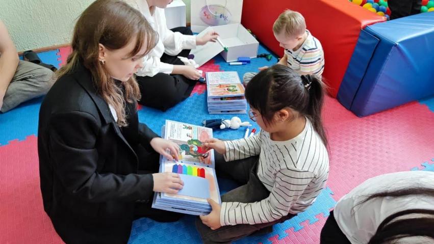 Презентация книги прошла в одном из центров развития для «солнечных» детей. Юные участники с интересом знакомились с пособием и выполняли задания.