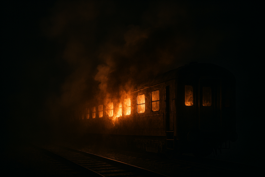 В КТЖ утверждают, что поезд, в котором произошло ЧП, не относится к железной дороге. По их словам, состав принадлежит частной компании и был передан киностудии для съемок.