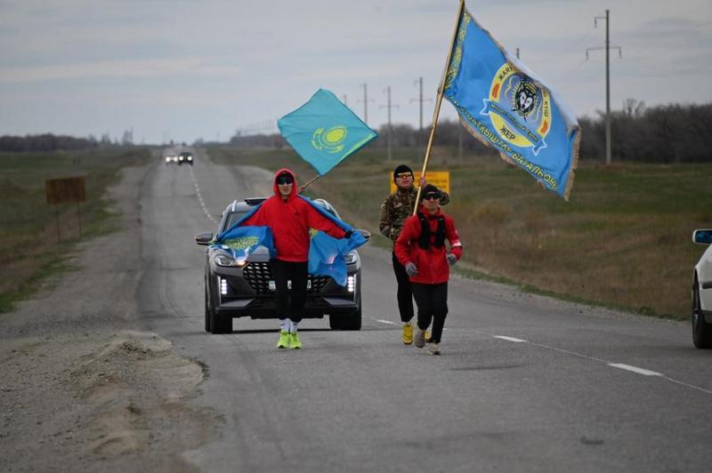 Старт Тимур Ержанов взял на территории воинской части в Караганде, первые километры пробежал вместе с супругой, а финишировал в родном посёлке Жанаарка области Улытау, где его встречали земляки и сослуживцы. Большую часть пути Ержанов пробежал самостоятельно, на отдельных участках его поддерживали коллеги.