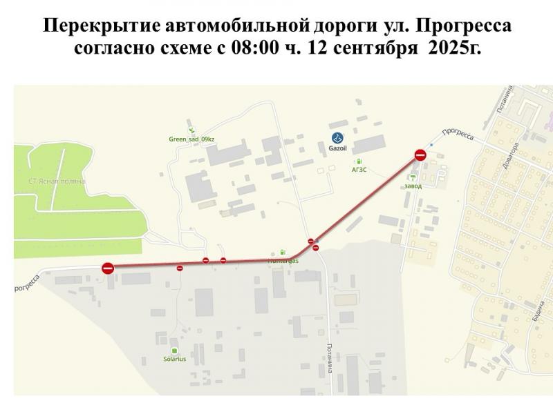 Как сообщили в отделе коммунального хозяйства, пассажирского транспорта и автомобильных дорог Караганды, завтра утром, 12 сентября, закроют проезд по улице Прогресса. Там приступят к среднему ремонту проезжей части.