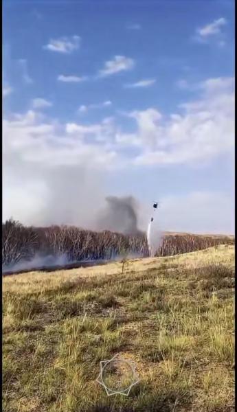 В Каркаралинском районе продолжается тушение возгорания сухой травы и лесных околков. На месте работают вертолёты — воздушными судами уже произведено шесть сбросов воды, сообщает МЧС.