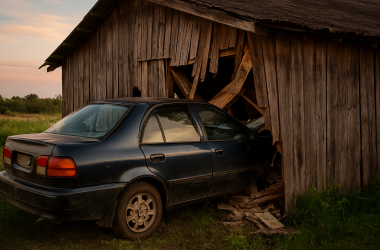 Водитель на большой скорости протаранил сарай и машину в СКО