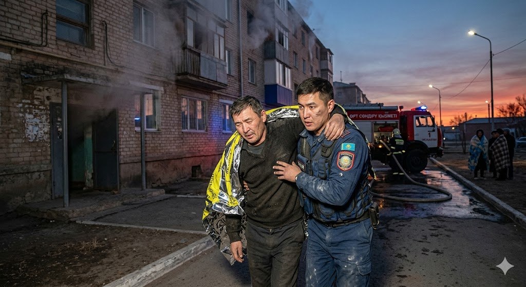 Жезқазғанда полицейлер өртке оранған пәтерден ер адамды аман алып шықты