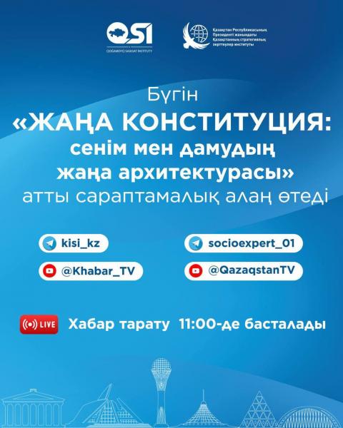 Бүгін «Жаңа Конституция: сенім мен дамудың жаңа архитектурасы» атты сараптамалық алаң өтеді.