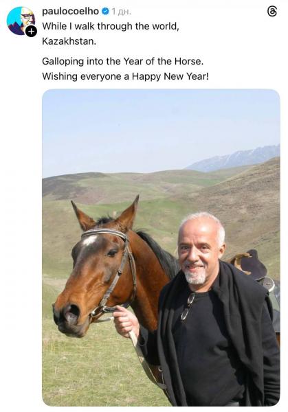 Әлемге әйгілі бразилиялық жазушы Пауло Коэльо Алматыға жасаған сапарынан естелік сурет жариялап, қазақ оқырмандарына жылы лебізін жолдады.