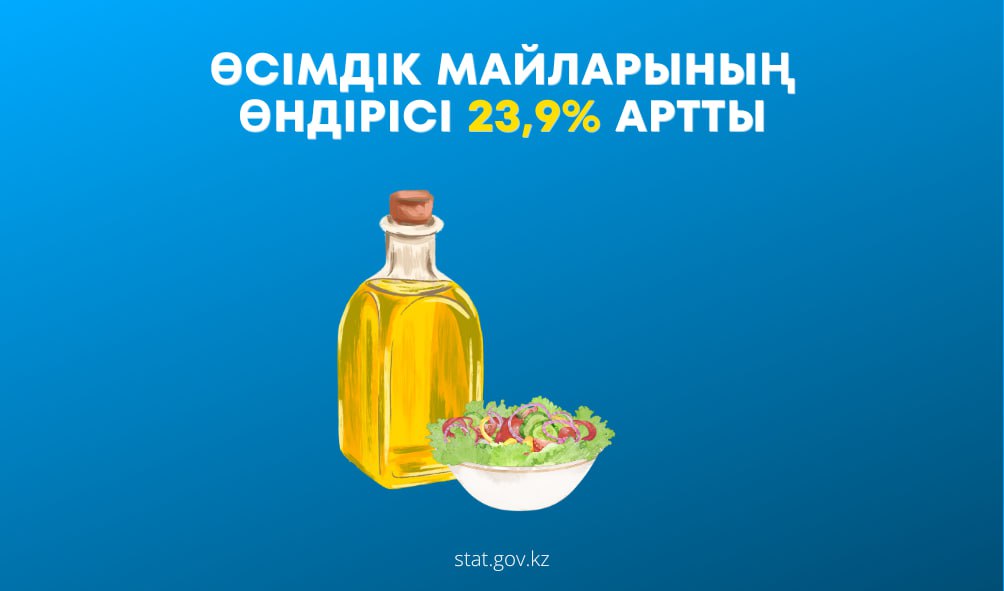 2025 жылдың алғашқы 7 айында республикада 521,2 мың тонна өсімдік майы өндірілді. Бұл көрсеткіш 2024 жылдың сәйкес кезеңімен салыстырғанда 23,9% көп.