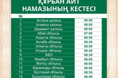 Еліміз бойынша Құрбан айт намазының кестесі жарияланды