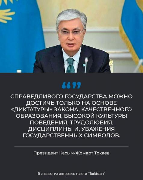 Справедливое государство может быть построено только на основе верховенства закона, качественного образования и высокой культуры поведения. Об этом заявил Президент Касым-Жомарт Токаев в интервью газете Turkistan, передает ИА "Life09".