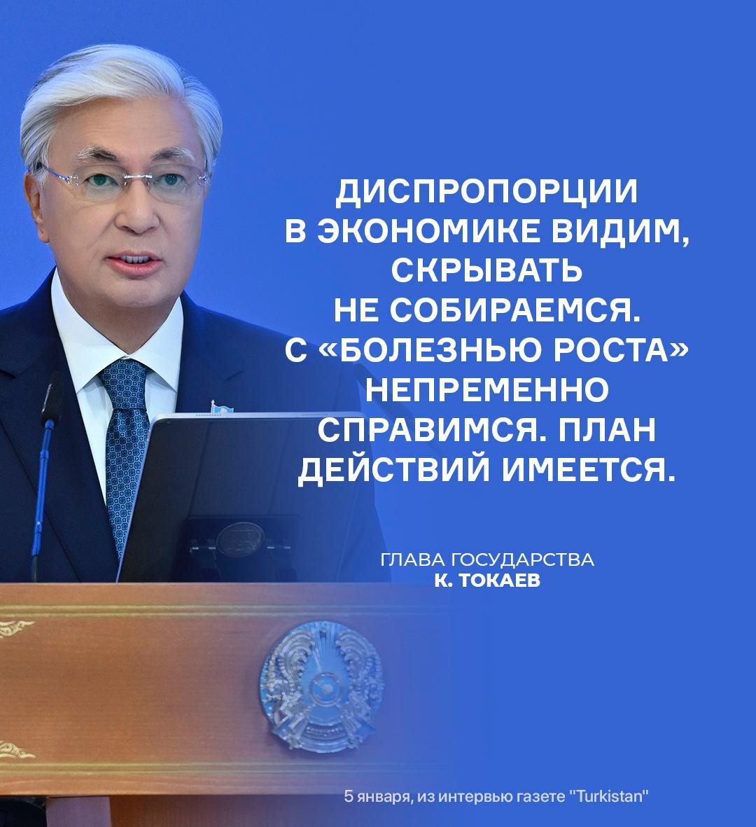 Президент Казахстана Касым-Жомарт Токаев отметил, что в экономике страны существуют диспропорции, и государство не намерено их скрывать. По его словам, власти осознают проблемы, связанные с так называемой «болезнью роста», и готовы к их системному решению.