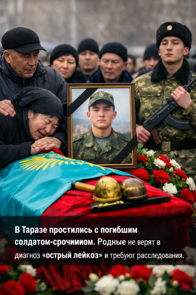 В Таразе накануне простились с погибшим в Шымкенте солдатом-срочником. Предварительно причиной смерти стал острый лейкоз, но родные юноши в это не верят, передает ИА "Life09" со ссылкой на Nur.kz.