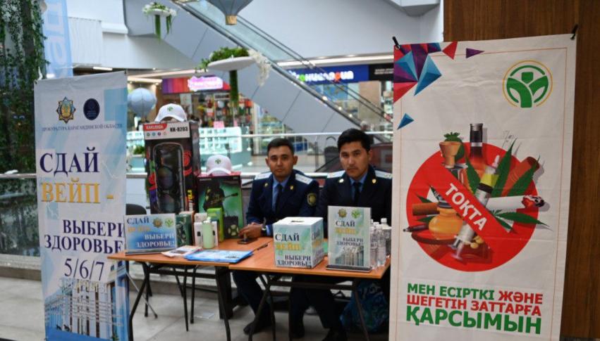 С 5 по 7 сентября в Караганде прошли акции «Сдай вейп – выбери здоровье!». Организаторами выступили прокуратура Карагандинской области, прокуратура района Ә.Бөкейхан города Караганды и Управление здравоохранения Карагандинской области.