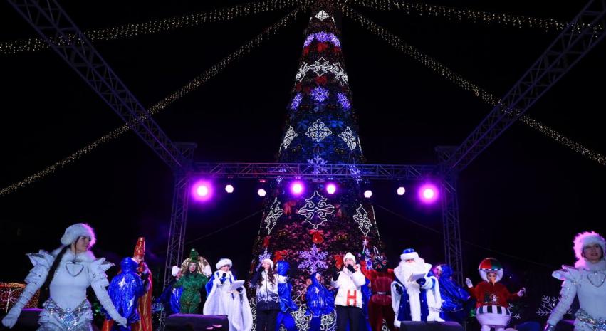 Вокруг ёлки собрались жители и гости Караганды, чтобы вместе окунуться в атмосферу праздника.