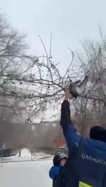 «Важна каждая жизнь»: в Караганде сотрудники МЧС пришли на помощь пернатому